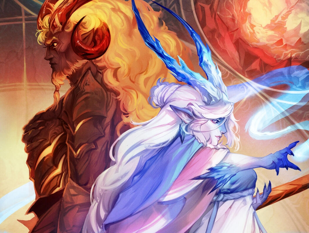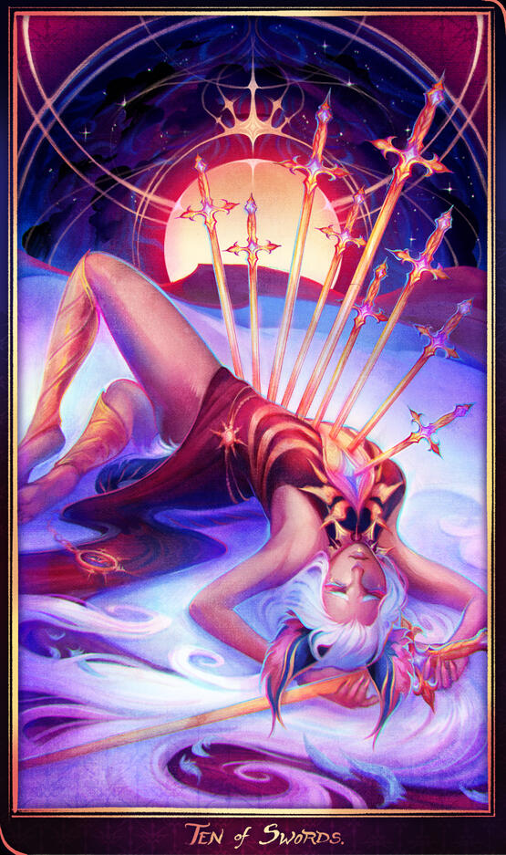 _a stylized card-like painting, with a dramatic pose, detailed frame and symbolic elements. _choose painted lines or fully painted style. includes up to 2 characters and your choice of 2-3 major symbolic elements you'd like incorporated into the card. an existing tarot card and its symbolism can be embodied in the artwork!tarot card $400